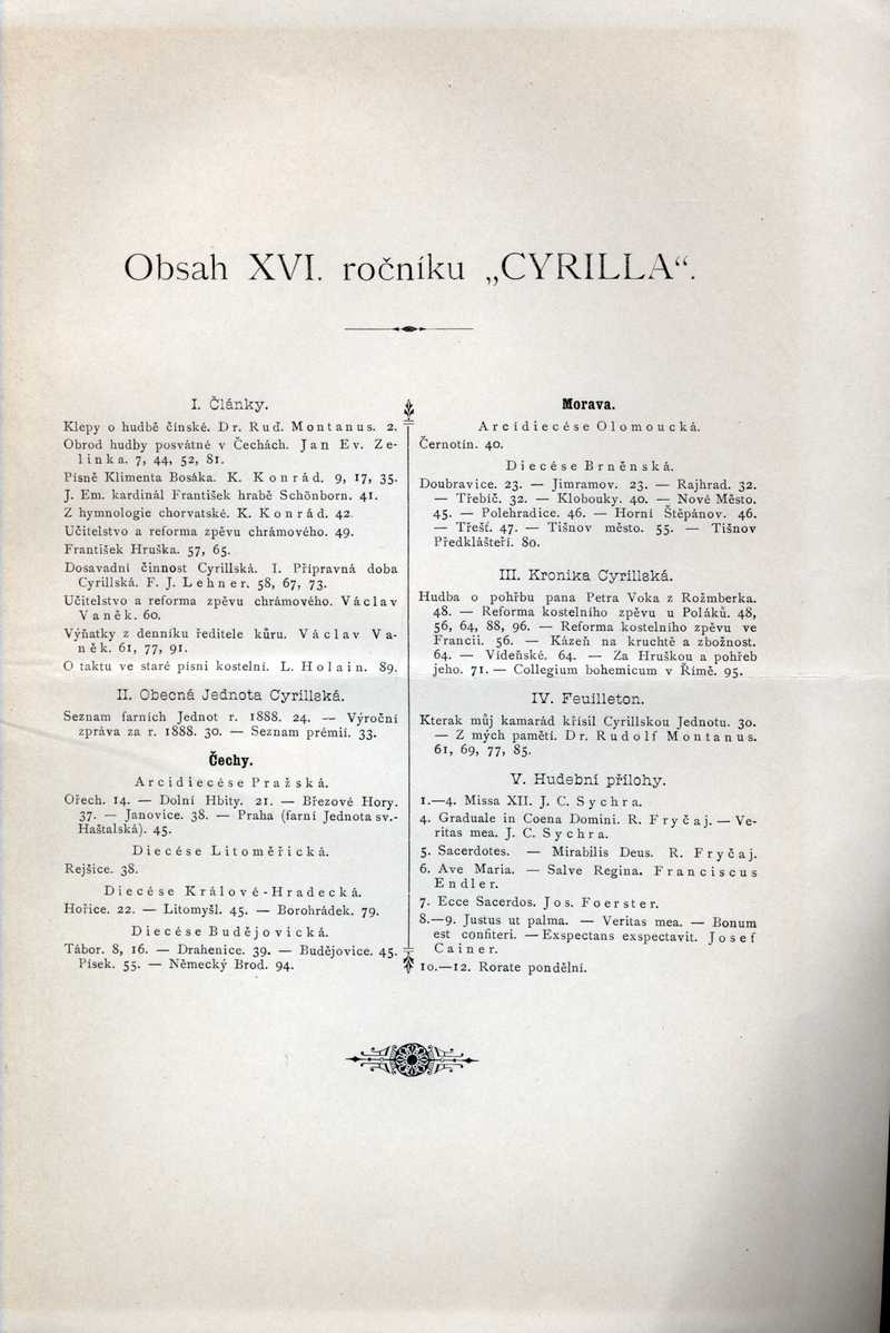 Obsah XVI. ročníku "Cyrilla" Ročník: 1889; strana: 0, příloha: 2 Přepis ke stažení ve formátu MS Word [0 kB]
