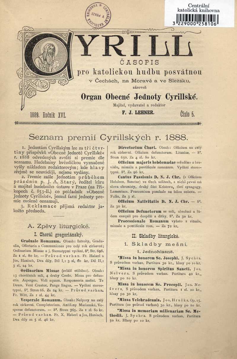 Seznam premií Cyrillských r. 1888 Ročník: 1889; strana: 33, Přepis ke stažení ve formátu MS Word [0 kB]