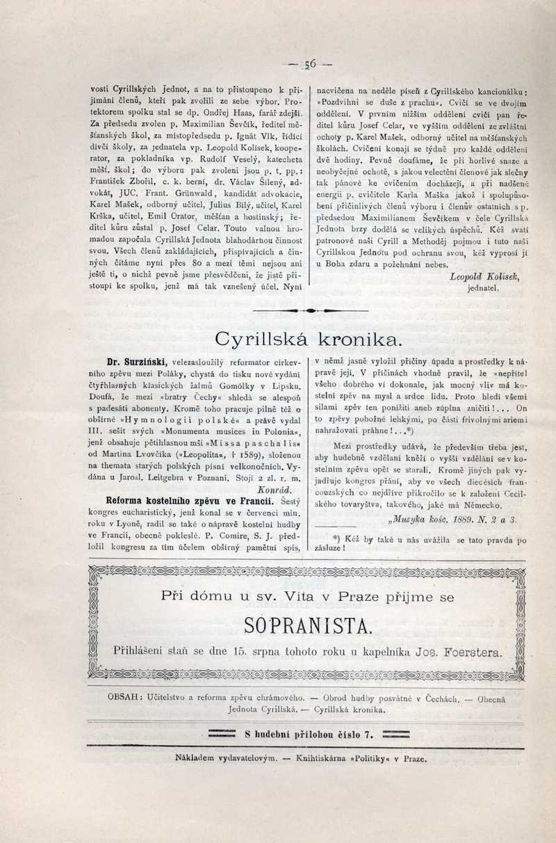 Reforma kostelního zpěvu ve Francii Ročník: 1889; strana: 56, Přepis ke stažení ve formátu MS Word [0 kB]
