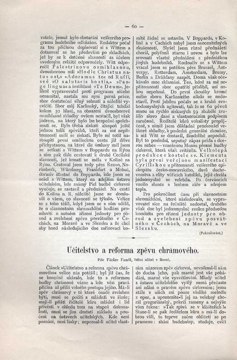 Učitelstvo a reforma zpěvu chrámového Ročník: 1889; strana: 60, Přepis ke stažení ve formátu MS Word [0 kB]