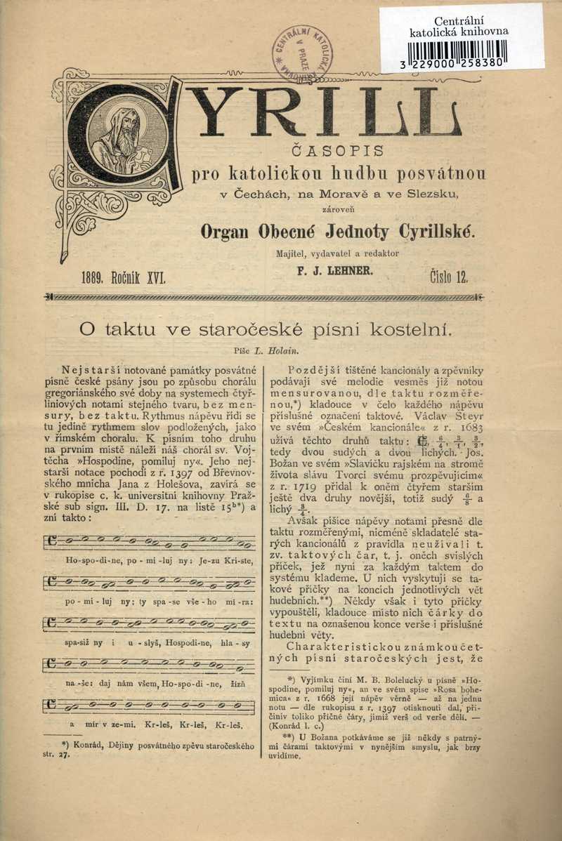 O taktu ve staročeské písni kostelní Ročník: 1889; strana: 89, Přepis ke stažení ve formátu MS Word [0 kB]