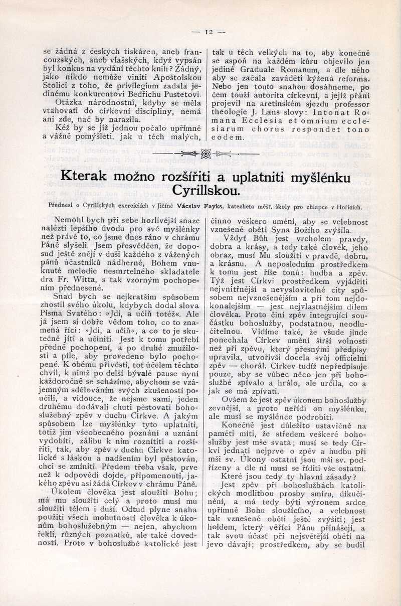 Kterak možno rozšířiti a uplatniti myšlénku Cyrillskou Ročník: 1901; strana: 12, Přepis ke stažení ve formátu MS Word [0 kB]