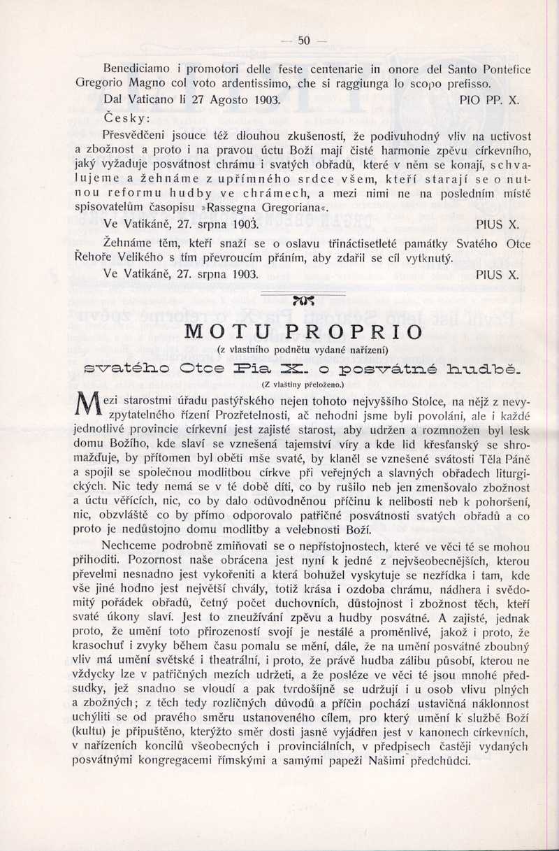 Motu Proprio sv. Otce Pia X. o posvátné hudbě Ročník: 1904; strana: 50, Přepis ke stažení ve formátu MS Word [0 kB]