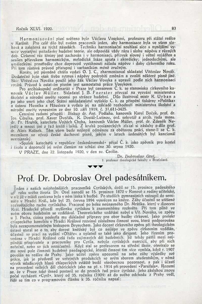 Prof. Dr. Dobroslav Orel padesátníkem Ročník: 1920; strana: 83, Přepis ke stažení ve formátu MS Word [0 kB]