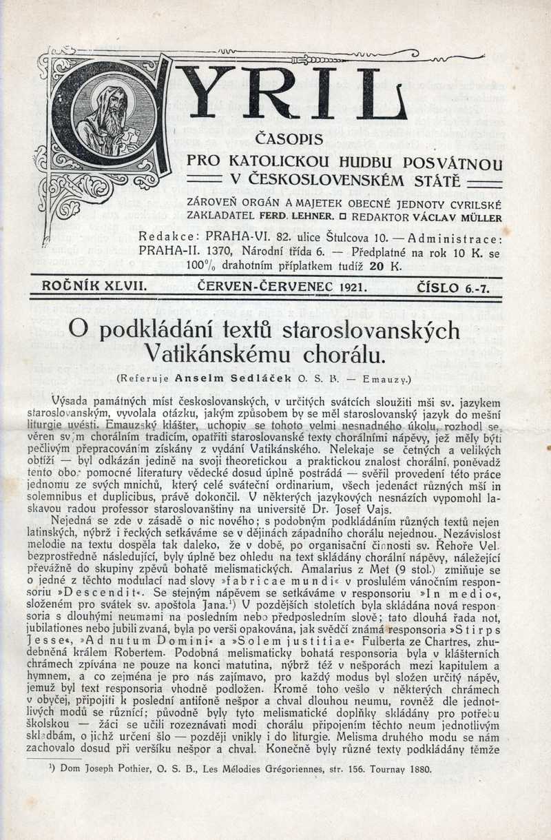 O podkládání textů staroslovanských Vatikánskému chorálu Ročník: 1921; strana: 49, Přepis ke stažení ve formátu MS Word [0 kB]