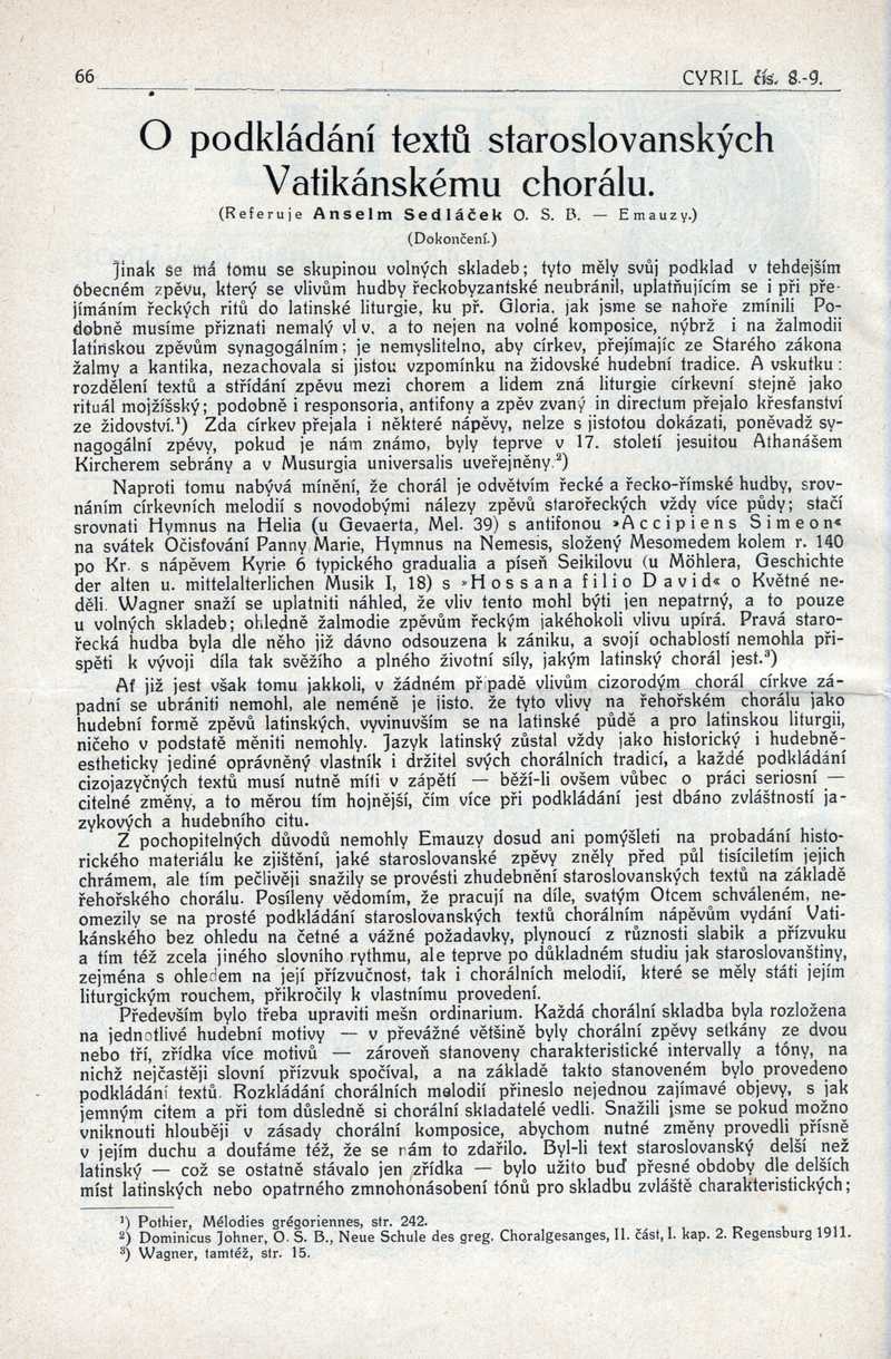 O podkládání textů staroslovanských Vatikánskému chorálu Ročník: 1921; strana: 66, Přepis ke stažení ve formátu MS Word [0 kB]
