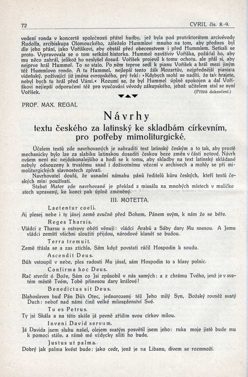 Návrhy textu čes. za latin. ke skladbám círk., pro potřeby mimoliturgické Ročník: 1921; strana: 72, Přepis ke stažení ve formátu MS Word [0 kB]