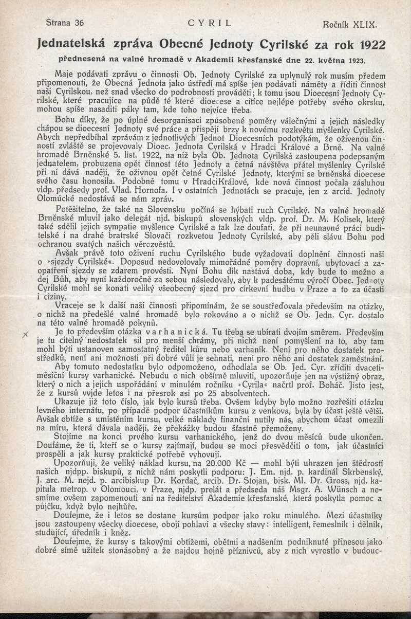 Jednatelská zpráva Obecné Jednoty Cyrillské za rok 1922 Ročník: 1923; strana: 36, Přepis ke stažení ve formátu MS Word [0 kB]