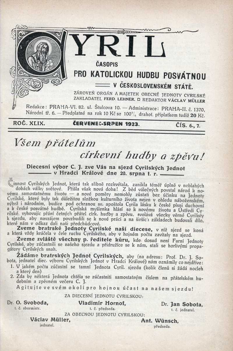 Všem přátelům církevní hudby a zpěvu! (Pozvání na sjezd) Ročník: 1923; strana: 49, Přepis ke stažení ve formátu MS Word [0 kB]