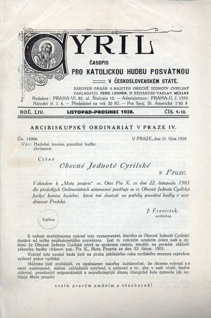 Arcibiskupský ordinariát v Praze IV (Hudeb. komise posv. hudby chrámové) Ročník: 1928; strana: 65, Přepis ke stažení ve formátu MS Word [0 kB]