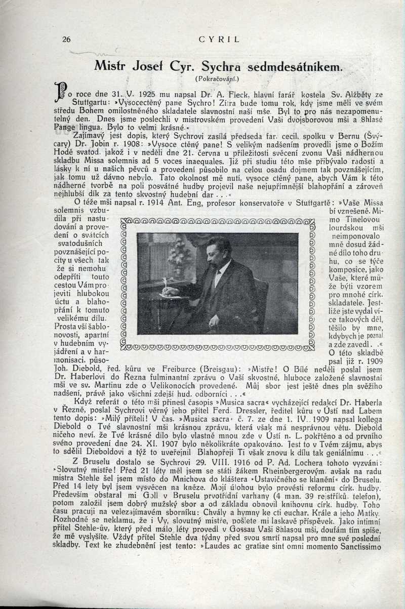 Mistr Jos. C. Sychra sedmdesátníkem Ročník: 1929; strana: 26, Přepis ke stažení ve formátu MS Word [0 kB]