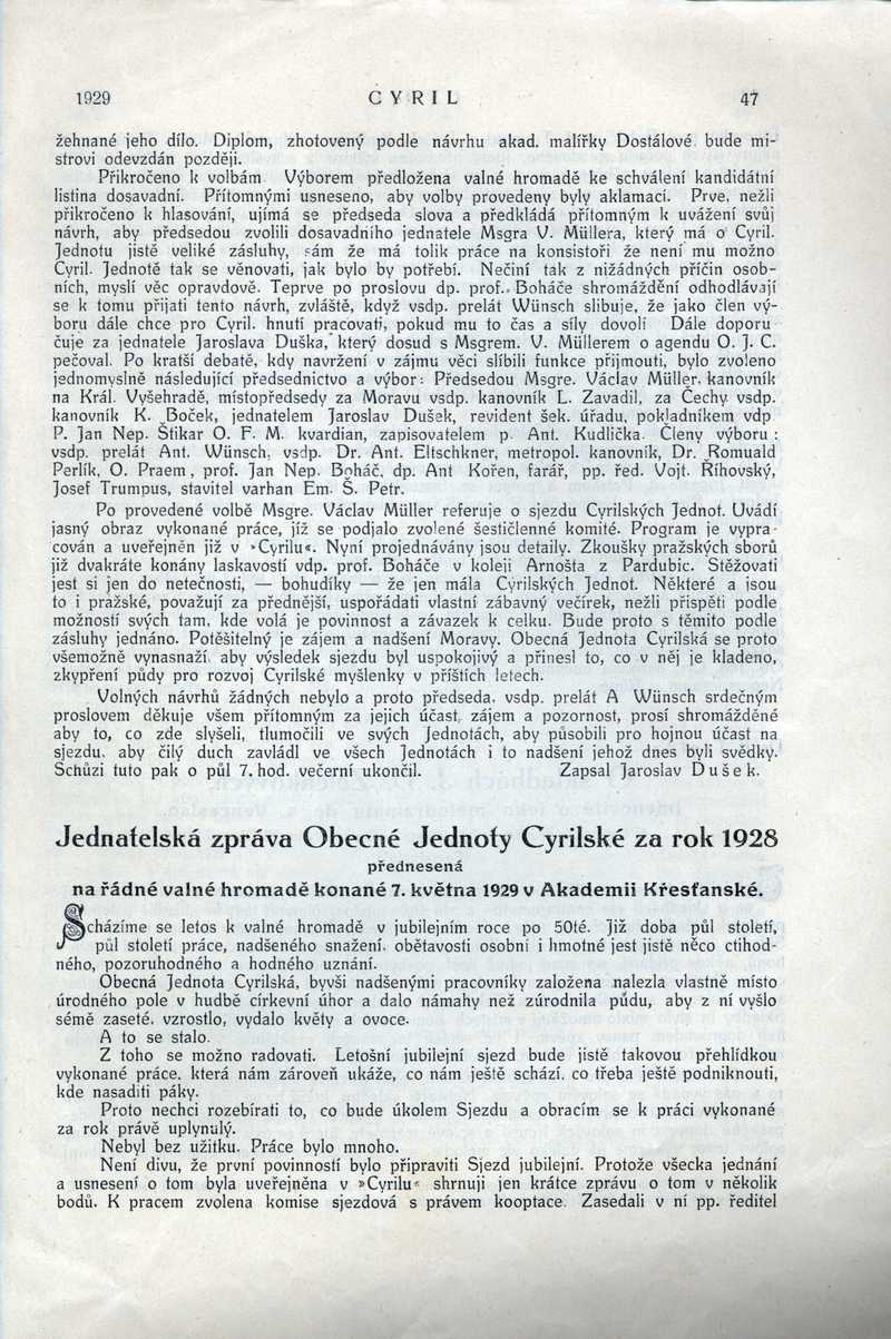 Jednatelská zpráva Obecné Jednoty Cyrilské za rok 1928 Ročník: 1929; strana: 47, Přepis ke stažení ve formátu MS Word [0 kB]