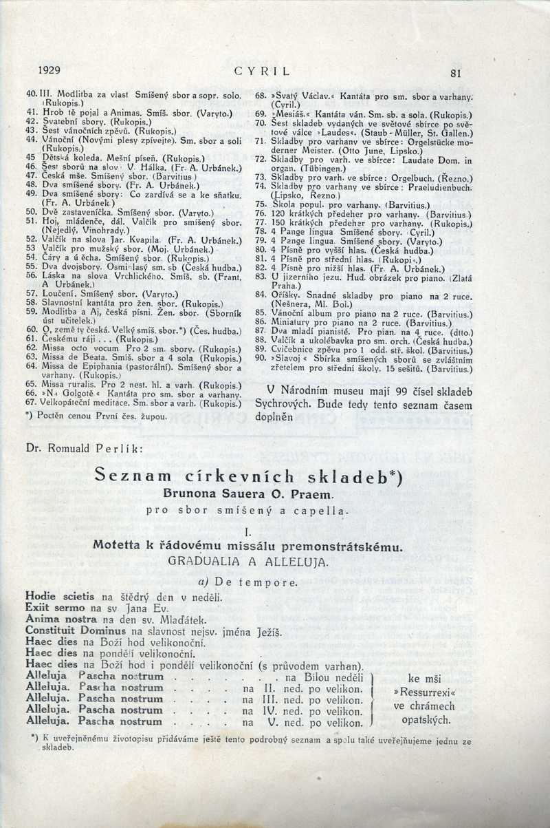 Seznam církevních skladeb Brunona Sauera Ročník: 1929; strana: 81, Přepis ke stažení ve formátu MS Word [0 kB]