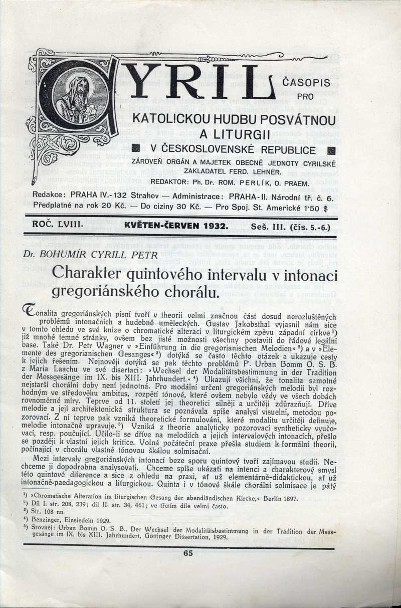 Charakter quintového intervalu v intonaci gregoriánského chorálu Ročník: 1932; strana: 65, Přepis ke stažení ve formátu MS Word [0 kB]