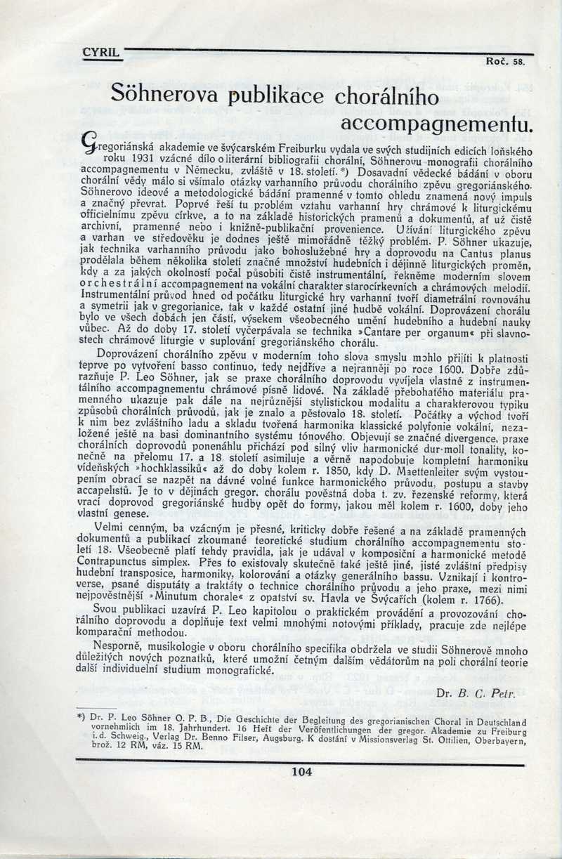 Söhnerova publikace chorálního accompagnementu Ročník: 1932; strana: 104, Přepis ke stažení ve formátu MS Word [0 kB]