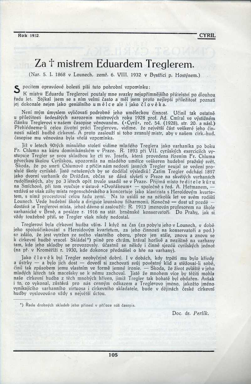 Za zemřelým mistrem Eduardem Treglerem Ročník: 1932; strana: 105, Přepis ke stažení ve formátu MS Word [0 kB]