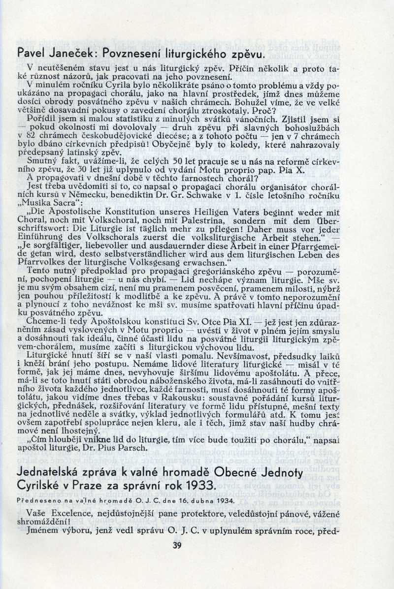 Jednatelská zpráva k valné hromadě Obecné Jednoty Cyrilské za správní rok 1933 Ročník: 1934; strana: 39, Přepis ke stažení ve formátu MS Word [0 kB]