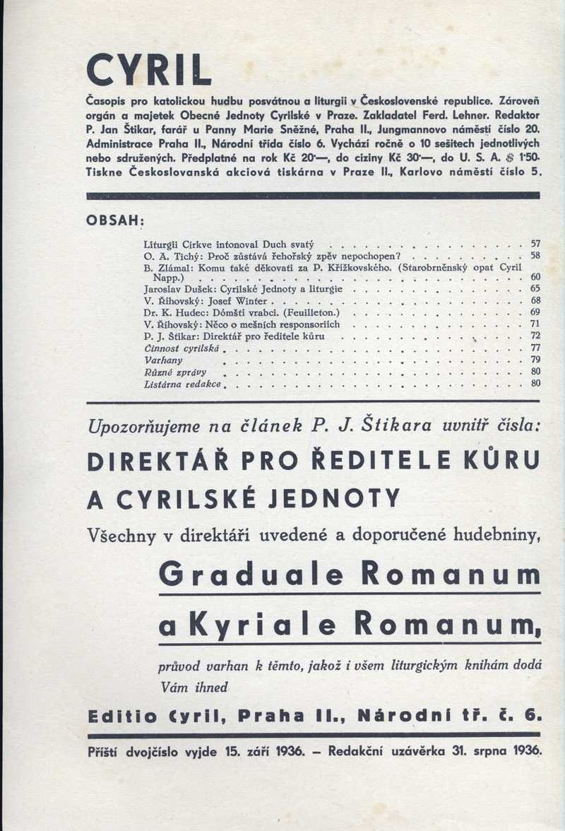 Ročník: 1936; strana: 56, příloha: 8