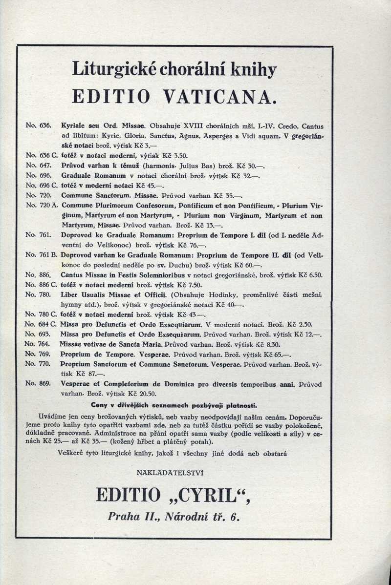 Liturgické chorální knihy Editio Vaticana Ročník: 1938; strana: 12, příloha: 1 Přepis ke stažení ve formátu MS Word [0 kB]