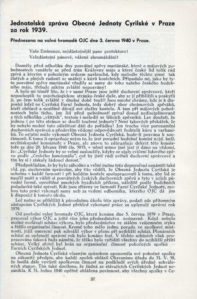 Jednatelská zpráva k valné hromadě Ob. Jednoty Cyrilské za správní rok 1939 Ročník: 1940; strana: 37, Přepis ke stažení ve formátu MS Word [0 kB]