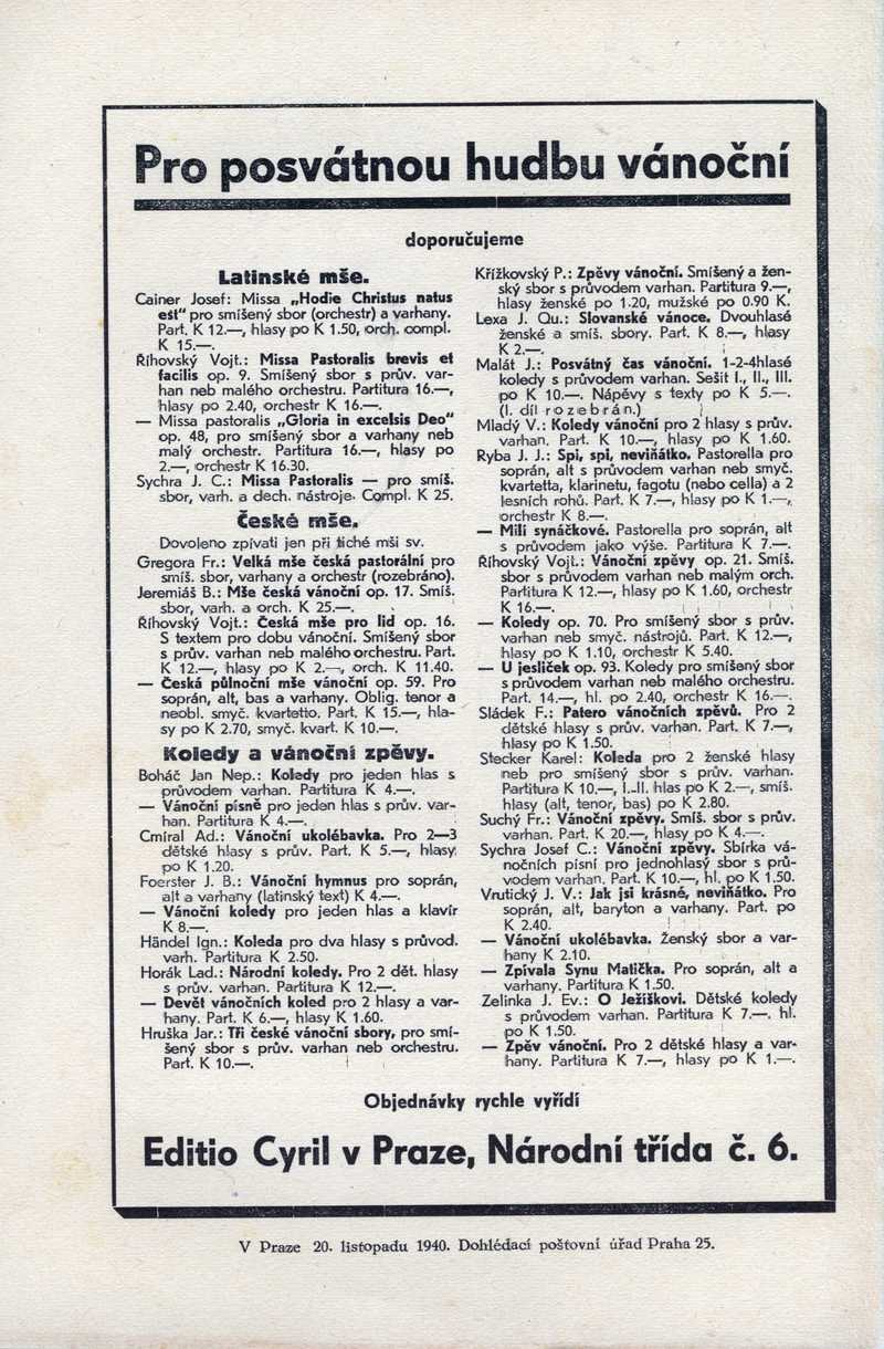 Pro posvátnou hudbu vánoční doporučujeme Ročník: 1940; strana: 96, příloha: 2 Přepis ke stažení ve formátu MS Word [0 kB]