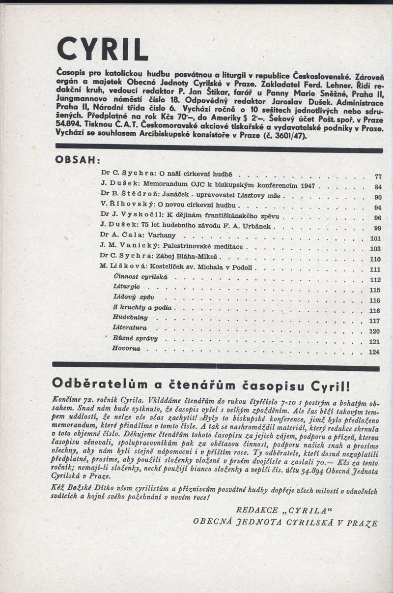 Odběratelům a čtenářům časopisu Cyril! Ročník: 1947; strana: 76, příloha: 4 Přepis ke stažení ve formátu MS Word [0 kB]