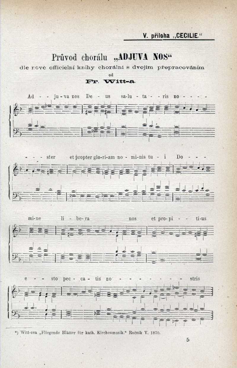 Průvod chorálu "Adjuva nos" Ročník: 1874; strana: 108, příloha: 17 Přepis ke stažení ve formátu MS Word [0 kB]