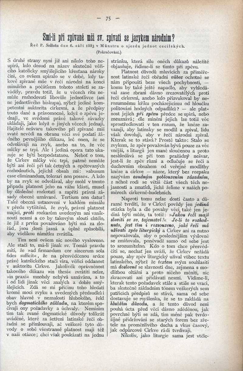 Smí-li při zpívané mši sv. zpívati se jazykem národním? Ročník: 1883; strana: 75, Přepis ke stažení ve formátu MS Word [0 kB]