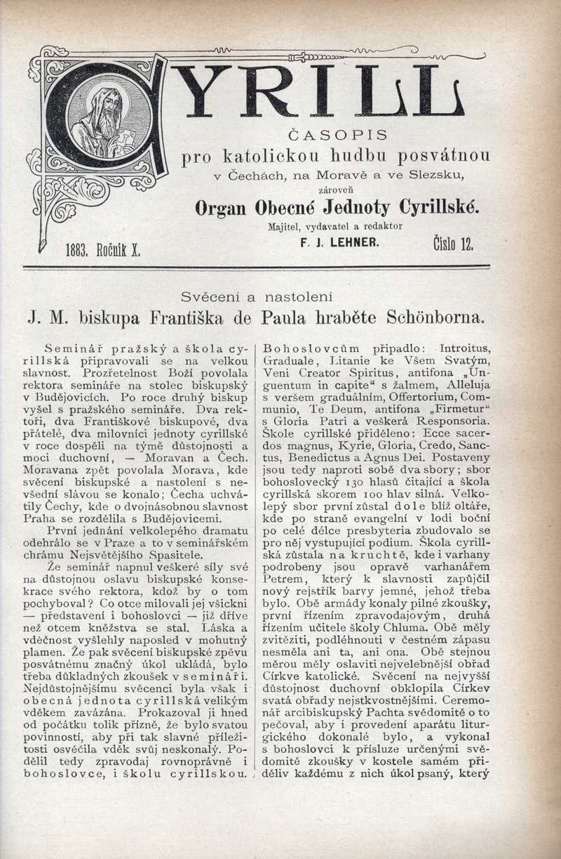 Svěcení a nastolení J. M. biskupa Františka de Paula hrab. Schönborna Ročník: 1883; strana: 89, Přepis ke stažení ve formátu MS Word [0 kB]
