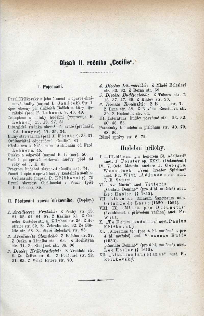 Obsah II. ročníku "Cecilie" Ročník: 1875; strana: 0, příloha: 3 Přepis ke stažení ve formátu MS Word [0 kB]