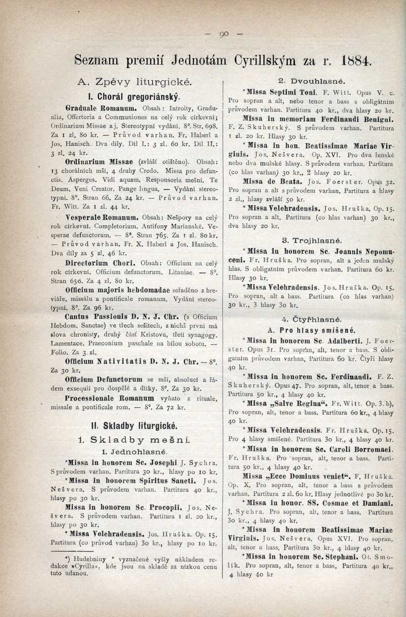 Seznam prémií Jednotám Cyrillským za r. 1884 Ročník: 1884; strana: 90, Přepis ke stažení ve formátu MS Word [0 kB]