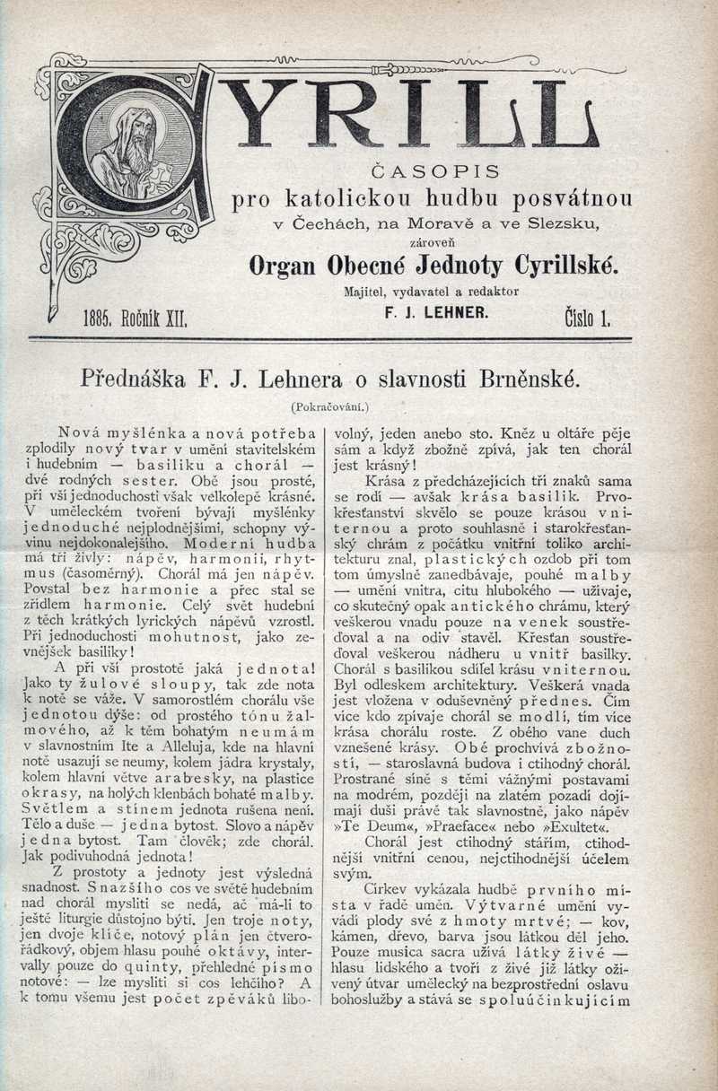 Přednáška F. J. Lehnera o slavnosti Brněnské Ročník: 1885; strana: 1, Přepis ke stažení ve formátu MS Word [0 kB]