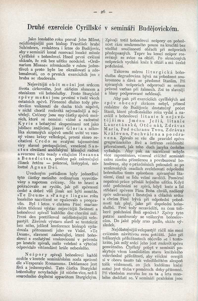 Druhé exercicie Cyrillské v semináři Budějovickém Ročník: 1885; strana: 26, Přepis ke stažení ve formátu MS Word [0 kB]