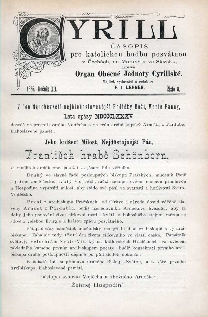 Jeho kníž. M., N. P. Fr. hrabě Schönborn na prestol sv. Vojtěcha Ročník: 1885; strana: 57, Přepis ke stažení ve formátu MS Word [0 kB]