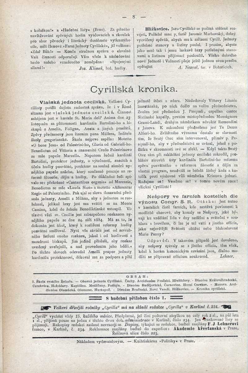 Nešpory ve farních kostelích dle výnosu Cong. S. R. Ročník: 1886; strana: 8, Přepis ke stažení ve formátu MS Word [0 kB]
