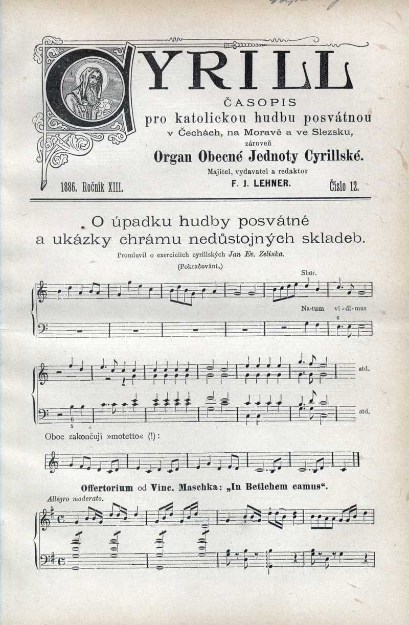 O úpadku hudby posvátné a ukázky chrámu nedůst. skladeb Ročník: 1886; strana: 89, Přepis ke stažení ve formátu MS Word [0 kB]