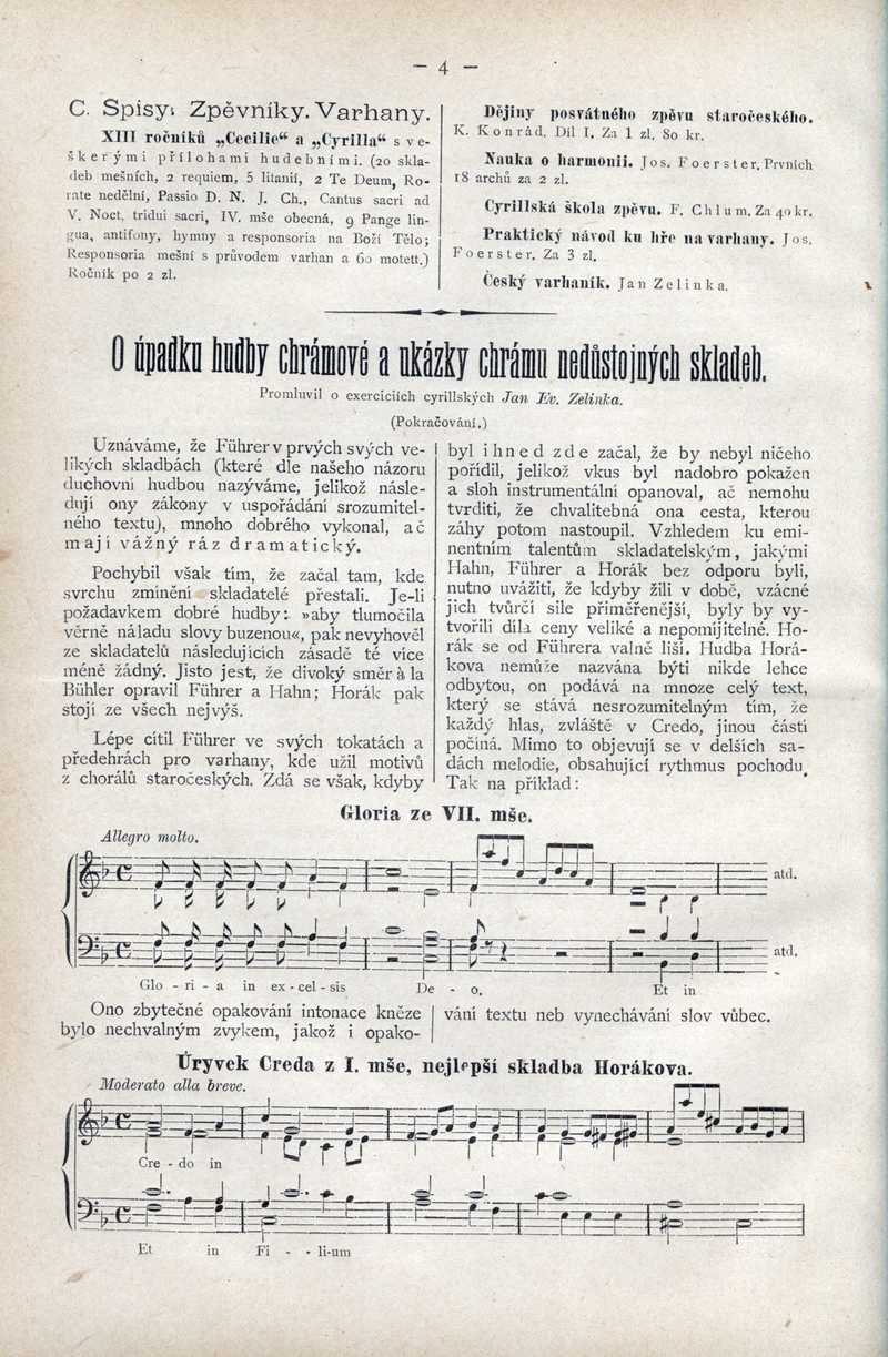 O úpadku hudby posvátné a ukázky chrámu nedůst. skladeb Ročník: 1887; strana: 4, Přepis ke stažení ve formátu MS Word [0 kB]