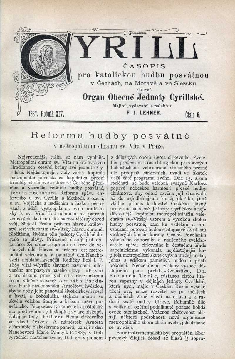 Reforma hudby posvátné v metropolitním chrámu sv. Víta v Praze Ročník: 1887; strana: 41, Přepis ke stažení ve formátu MS Word [0 kB]