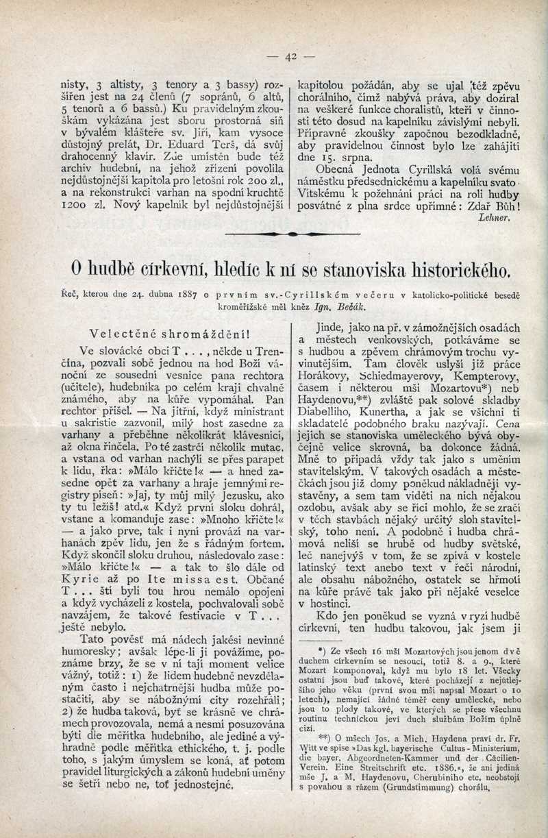 O hudbě církevní, hledíc k ní se stanoviska historického Ročník: 1887; strana: 42, Přepis ke stažení ve formátu MS Word [0 kB]