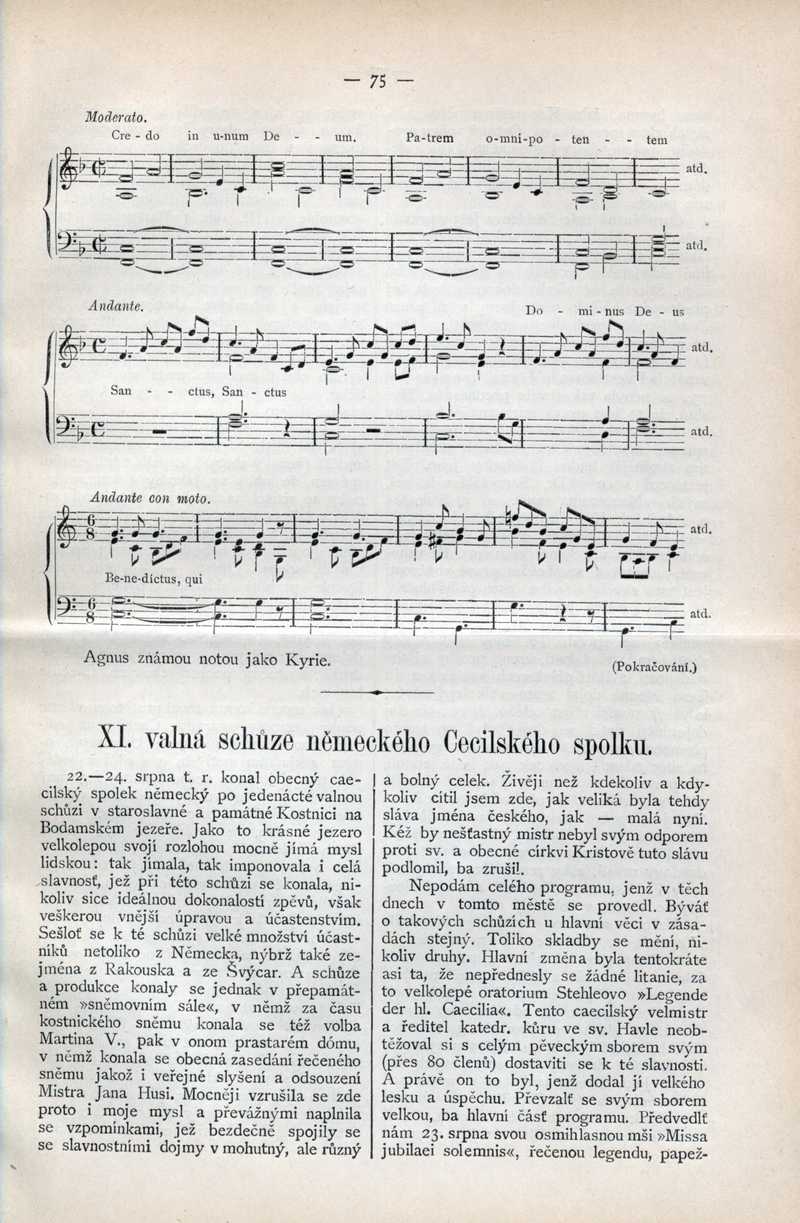 XI. valná schůze německého Cecilského spolku Ročník: 1887; strana: 75, Přepis ke stažení ve formátu MS Word [0 kB]