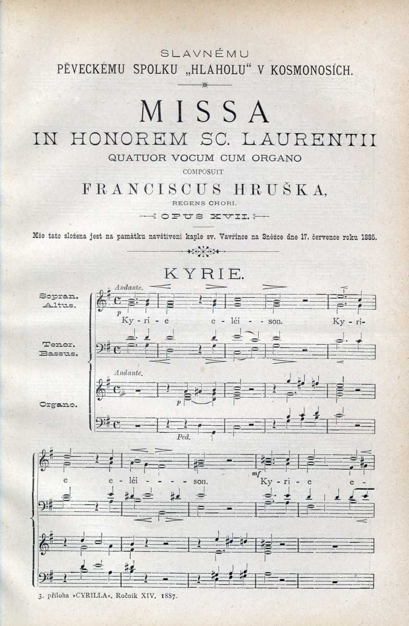 Missa in honorem Sc. Laurentii Ročník: 1887; strana: 97, příloha: 1 Přepis ke stažení ve formátu MS Word [0 kB]