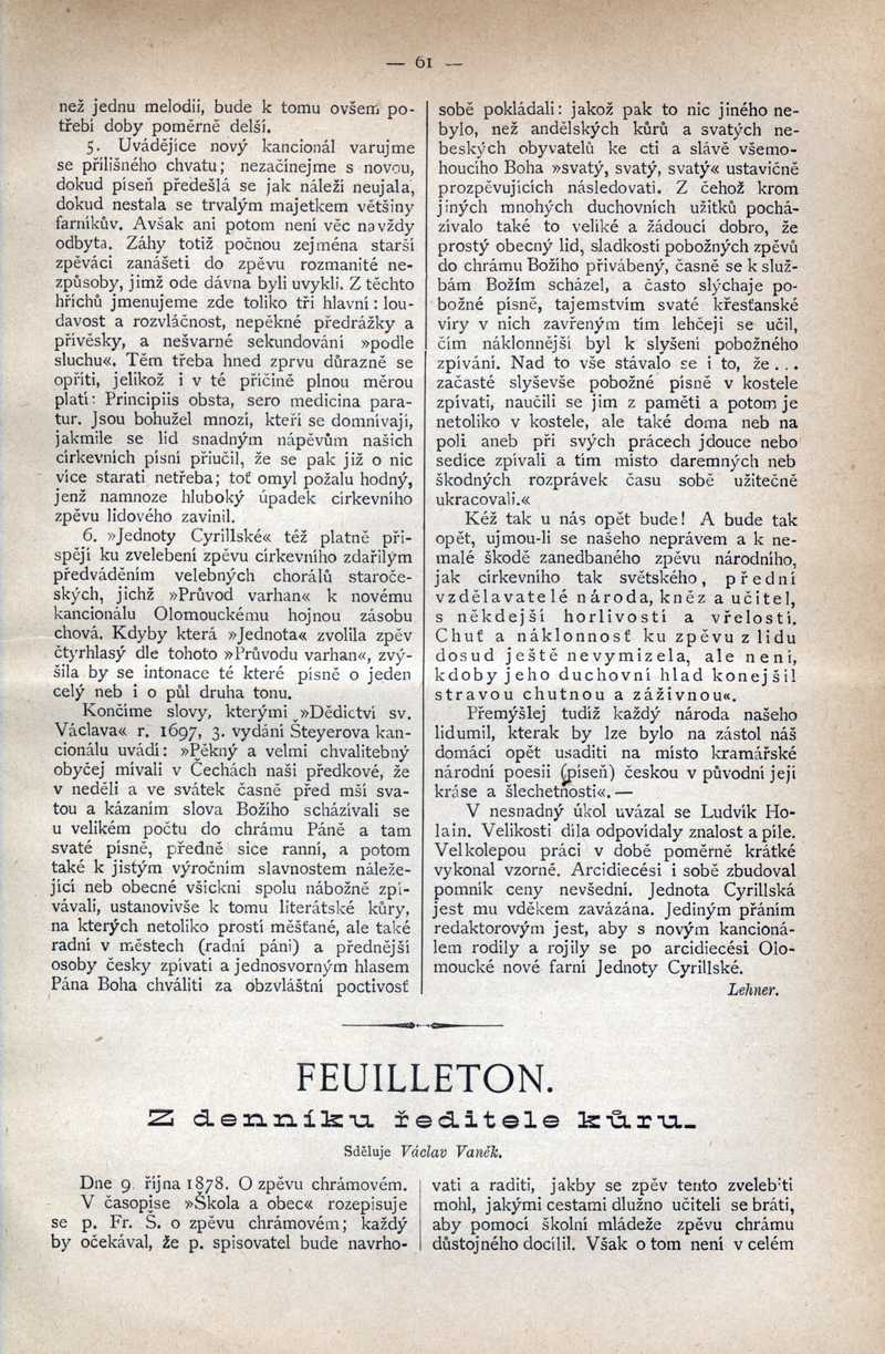 Feuilleton (Z deníku ředitele kůru) Ročník: 1888; strana: 61, Přepis ke stažení ve formátu MS Word [0 kB]