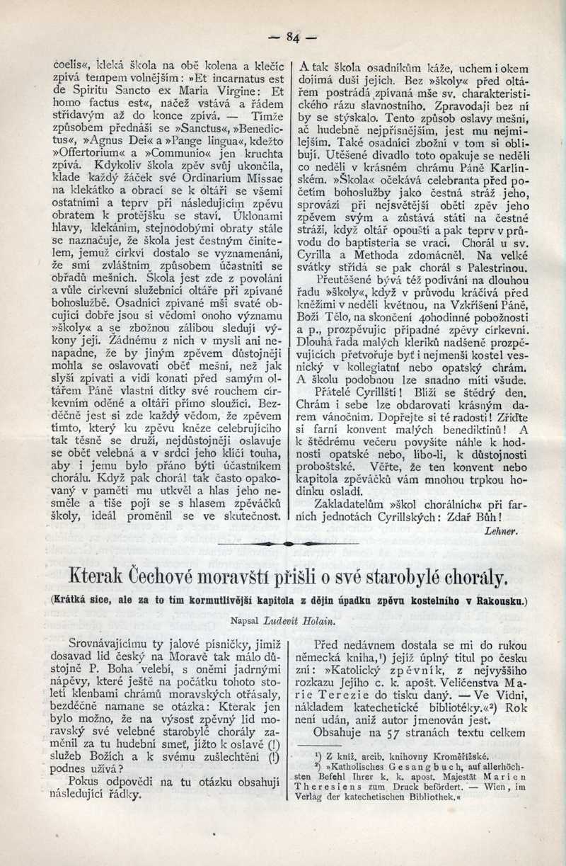 Kterak Čechové moravští přišli o své starobylé chorály Ročník: 1888; strana: 84, Přepis ke stažení ve formátu MS Word [0 kB]