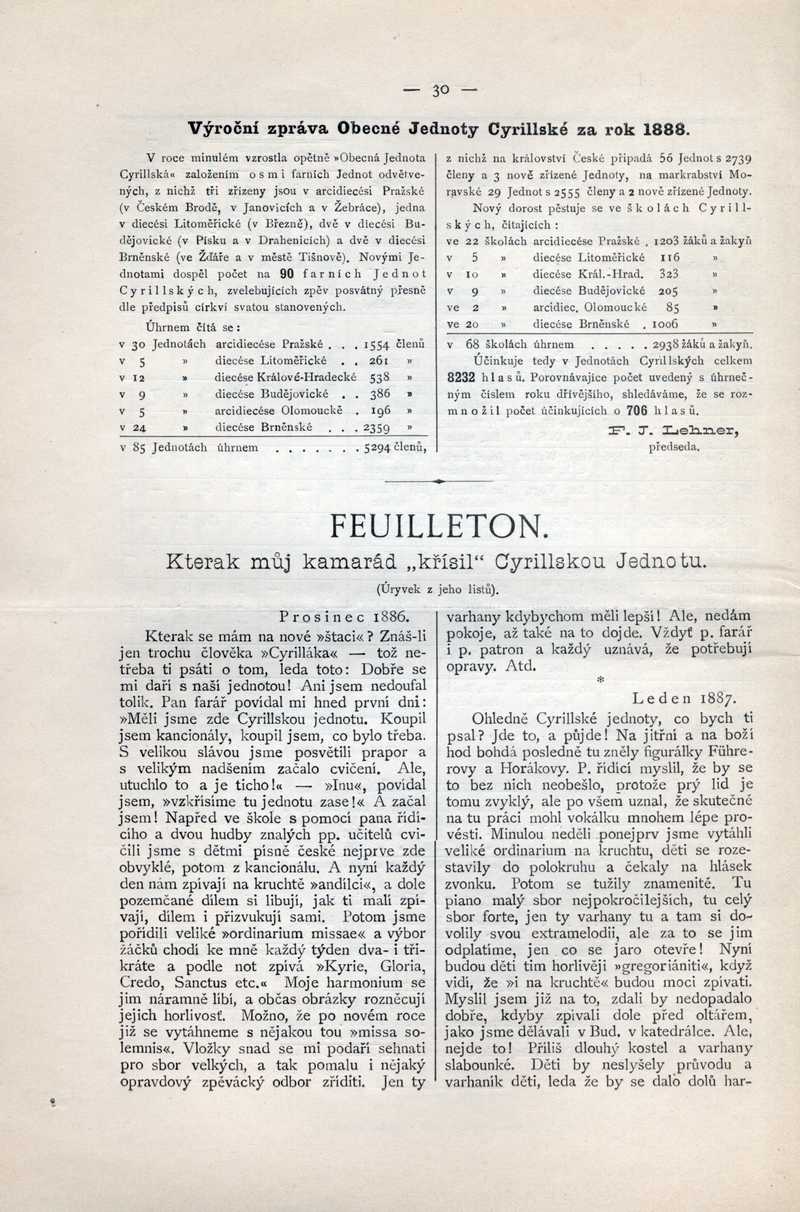 Feuilleton (Kterak můj kamarád "křísil" Cyrillskou Jednotu Ročník: 1889; strana: 30, Přepis ke stažení ve formátu MS Word [0 kB]