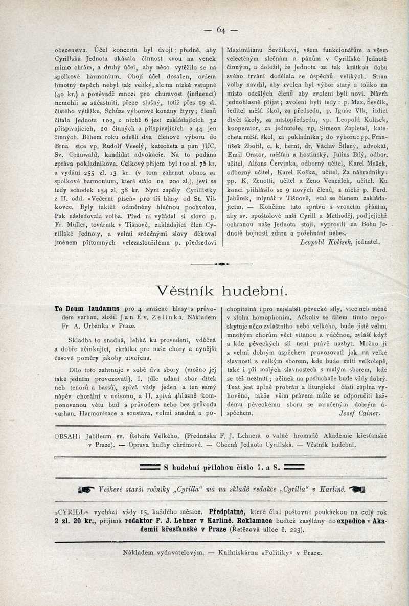 Věstník hudební (Te Deum laudamus) Ročník: 1890; strana: 64, Přepis ke stažení ve formátu MS Word [0 kB]