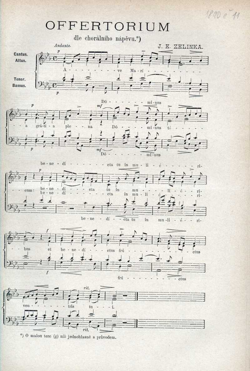 Offertorium dle chorálního nápěvu (Ave Maria) Ročník: 1890; strana: 96, příloha: 17 Přepis ke stažení ve formátu MS Word [0 kB]