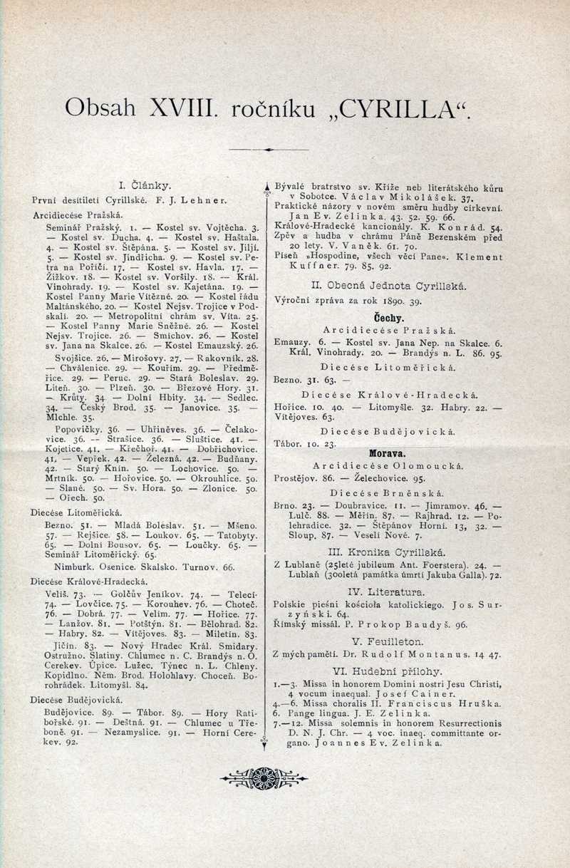 Obsah XVIII. ročníku "Cyrilla" Ročník: 1891; strana: 0, příloha: 2 Přepis ke stažení ve formátu MS Word [0 kB]