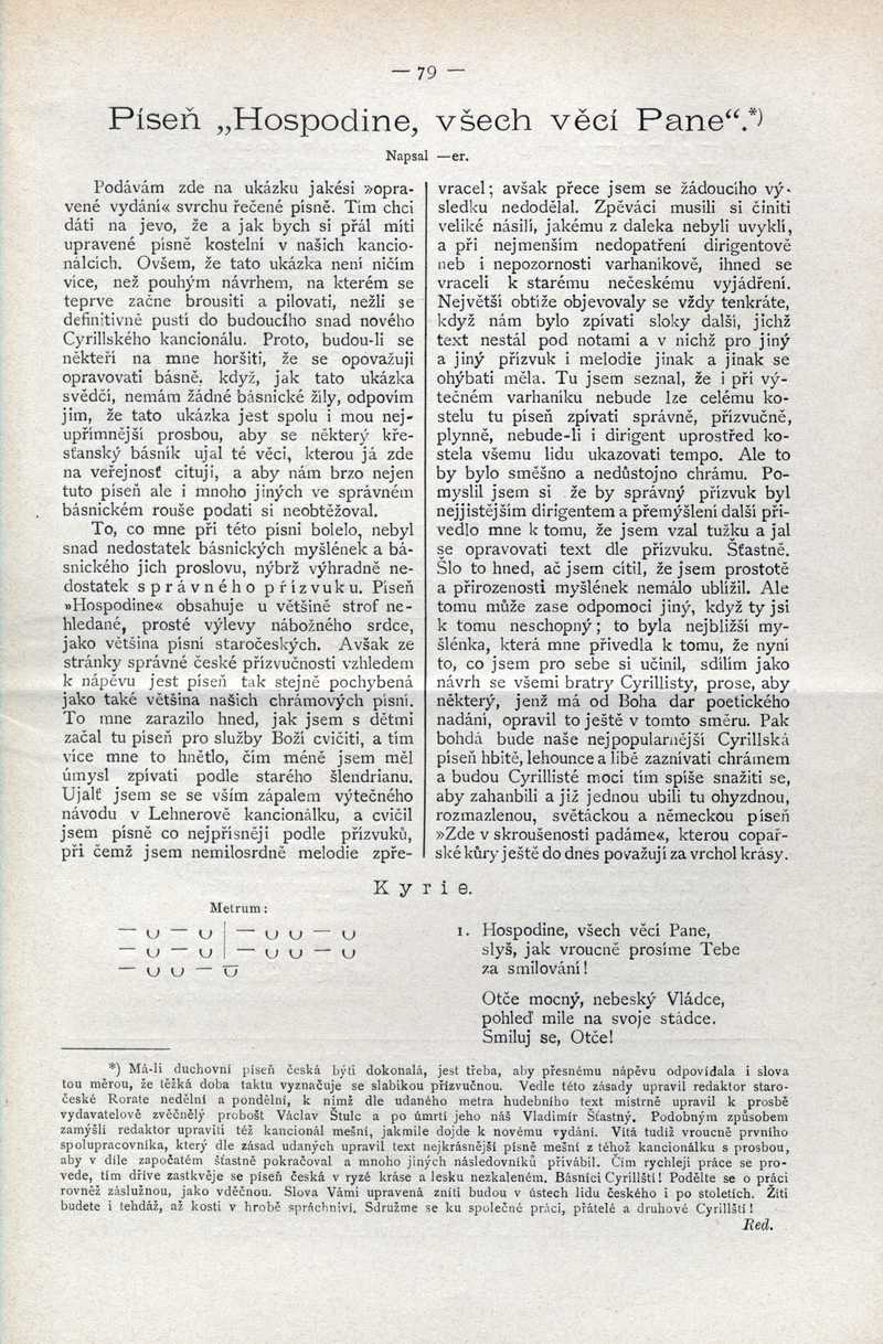 Píseň "Hospodine, všech věcí Pane" Ročník: 1891; strana: 79, Přepis ke stažení ve formátu MS Word [0 kB]