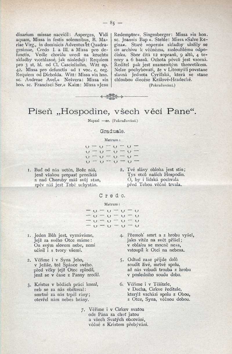 Píseň "Hospodine, všech věcí Pane" Ročník: 1891; strana: 85, Přepis ke stažení ve formátu MS Word [0 kB]