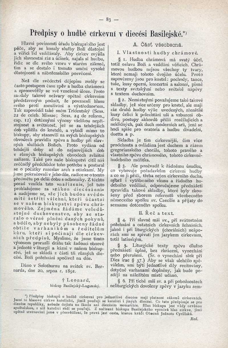Předpisy o hudbě církevní v diecési Basilejské Ročník: 1892; strana: 83, Přepis ke stažení ve formátu MS Word [0 kB]